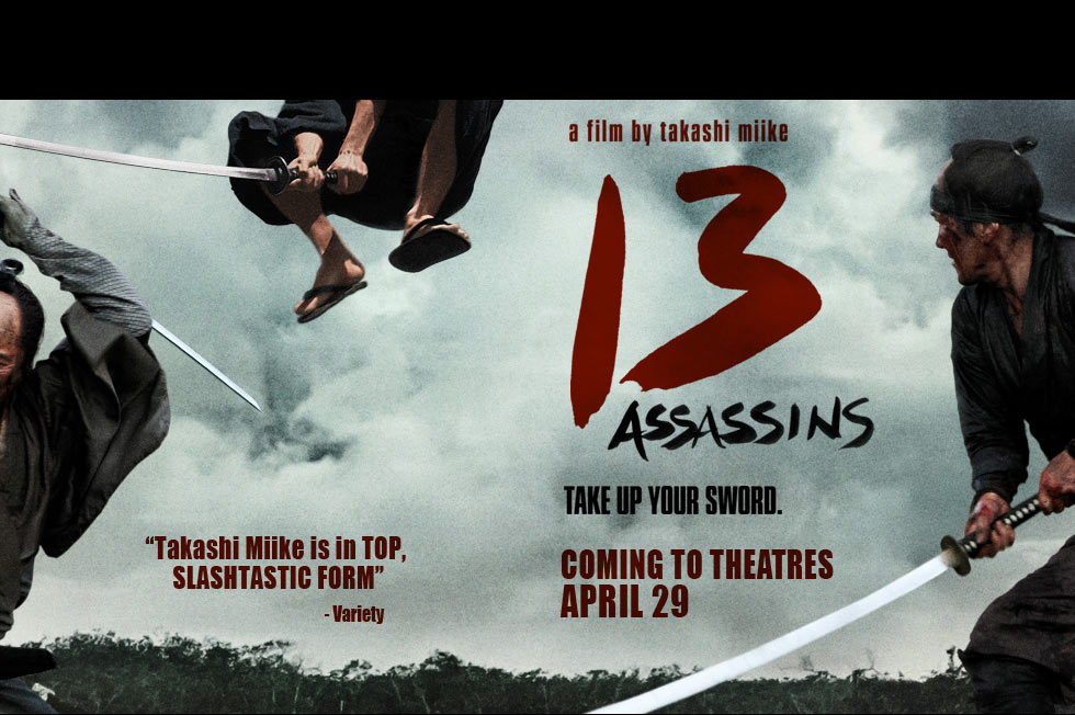Takashi Miike’s 13 Assassins took a bow at last year’s London Film Festival and you can see what our Craig Skinner thought of it here. It is available On Demand now and will run in theatres in the US from the end of April and in UK cinemas about a week after that. Having wowed and appalled us in equal measure with his impactful and horrifying one-two of Audition and Ichi the Killer, Miike is now trying his hand at Samurai films and if Craig’s review and the trailer below are anything to go by, he is meeting with considerable success.