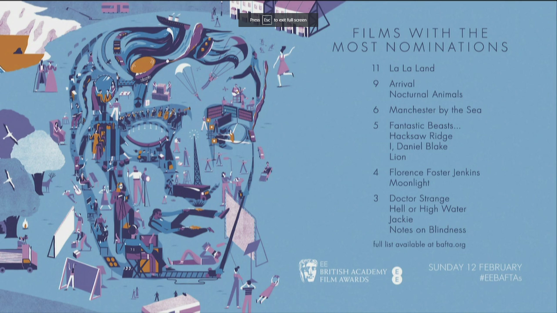 Denis Villeneuve’s Arrival appears on the Best Picture list, however where the two academies often differ in is the number of British films on the BAFTA list. We see Andrea Arnold’s American Honey side up with Ken Loach’s I, Daniel Blake on the list of nominations.