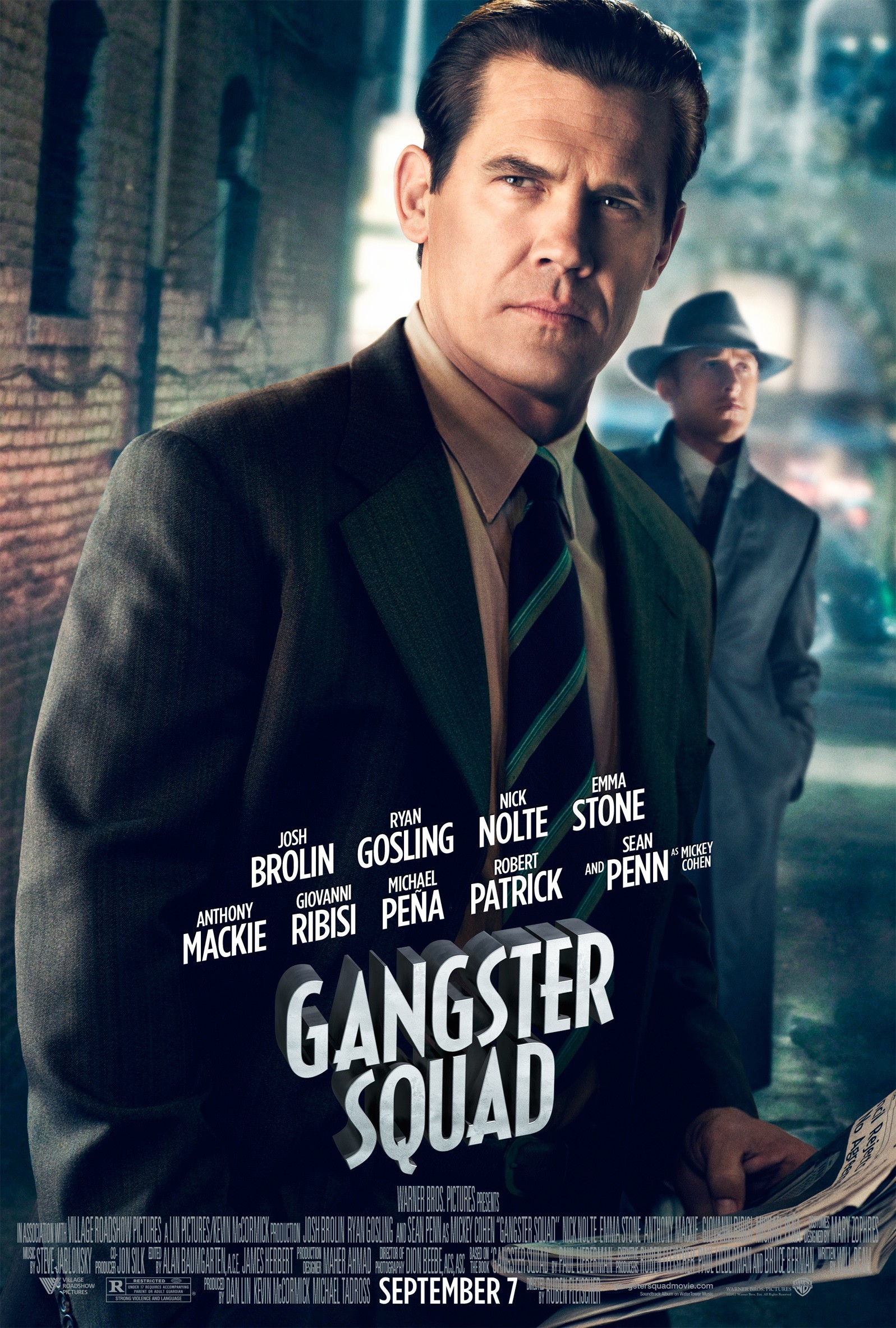 “Los Angeles, 1949. Ruthless, Brooklyn-born mob king Mickey Cohen (Sean Penn) runs the show in this town, reaping the ill-gotten gains from the drugs, the guns, the prostitutes and—if he has his way—every wire bet placed west of Chicago. And he does it all with the protection of not only his own paid goons, but also the police and the politicians who are under his control. It’s enough to intimidate even the bravest, street-hardened cop…except, perhaps, for the small, secret crew of LAPD outsiders led by Sgt. John O’Mara (Josh Brolin) and Jerry Wooters (Ryan Gosling), who come together to try to tear Cohen’s world apart.”
