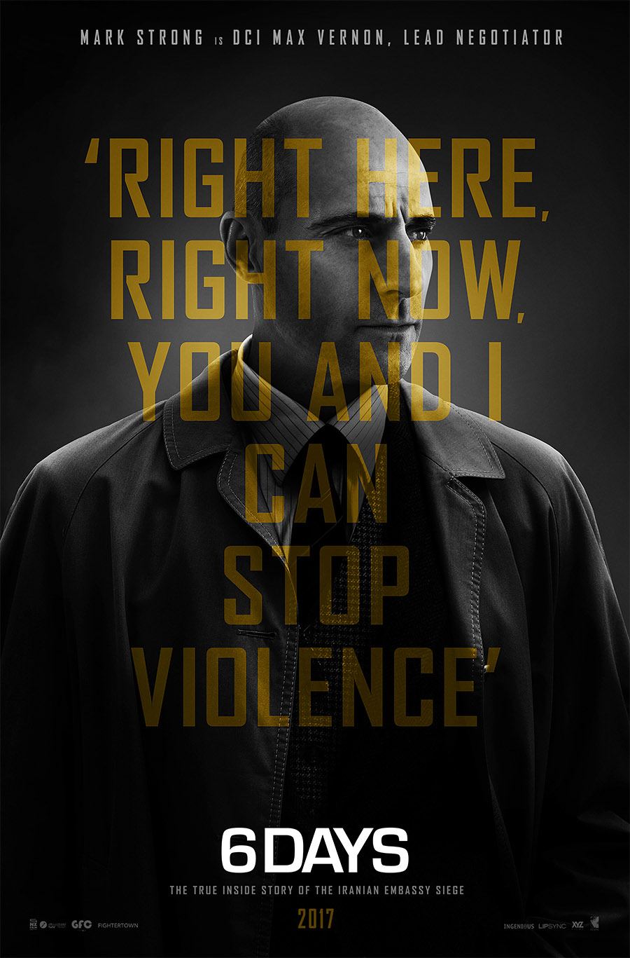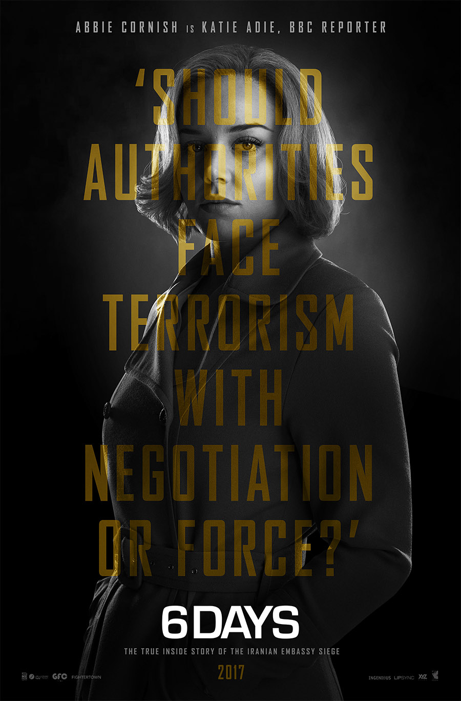 The feature, which chronicles the events that took place during the 1980 Iranian Embassy siege in London, focuses on the perspective of three people who played a vital part in the events at the time.  The hostage negotiator Max Vernon (played by Mark Strong), the man responsible for communicating with the terrorists inside the building; news reporter Kate Adie (Abbie Cornish), who was covering the events for the BBC and Rusty Firmin (Jamie Bell), leader of one of the SAS assault teams that entered the Iranian Embassy to end the siege, all of which are depicted plus one, the faceless SAS Operative in the character posters below.