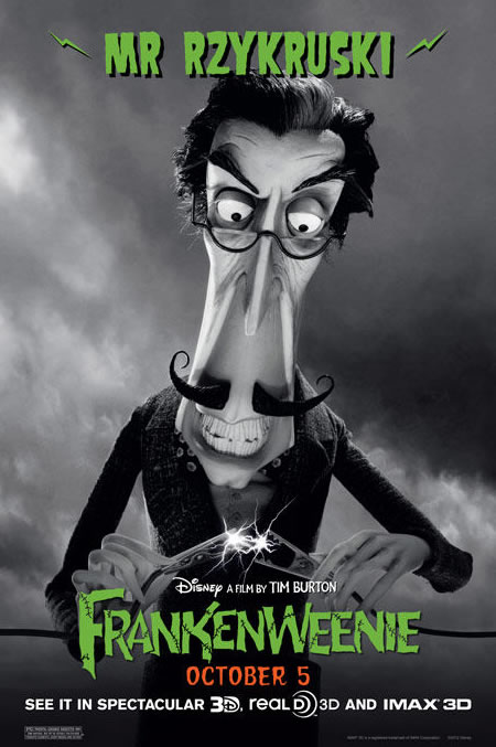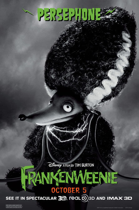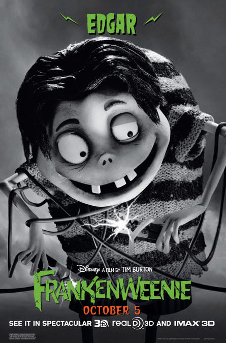 Frankenweenie will be released in 3D and IMAX 3D on 5th October in the US, and will come to the UK a little later on 17th October. As usual with these new posters and portraits, you can click to enlarge.