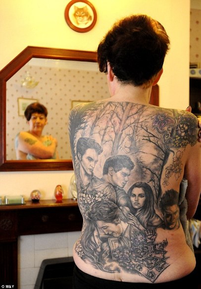 As reported via (of all places!) The Mail’s website, 49-year-old (yes, she’s 49) supermarket worker from Reading, Cathy Ward, must have decided that reading the novels, owning the DVD’s and collecting other assorted memorabilia from the Twilight Saga was not enough. It look’s like she wanted a more permanent reminder of her love for the franchise.