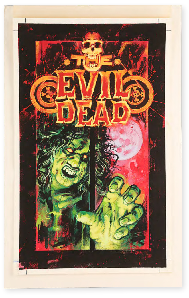 If you were a video store regular back in the ’80s you’ll recognise this vibrant, ghastly tribute to Sam Raimi’s 1981 cult classic. This is the original Video Cover artwork by Graham Humphreys, and is expected to fetch a pretty penny.