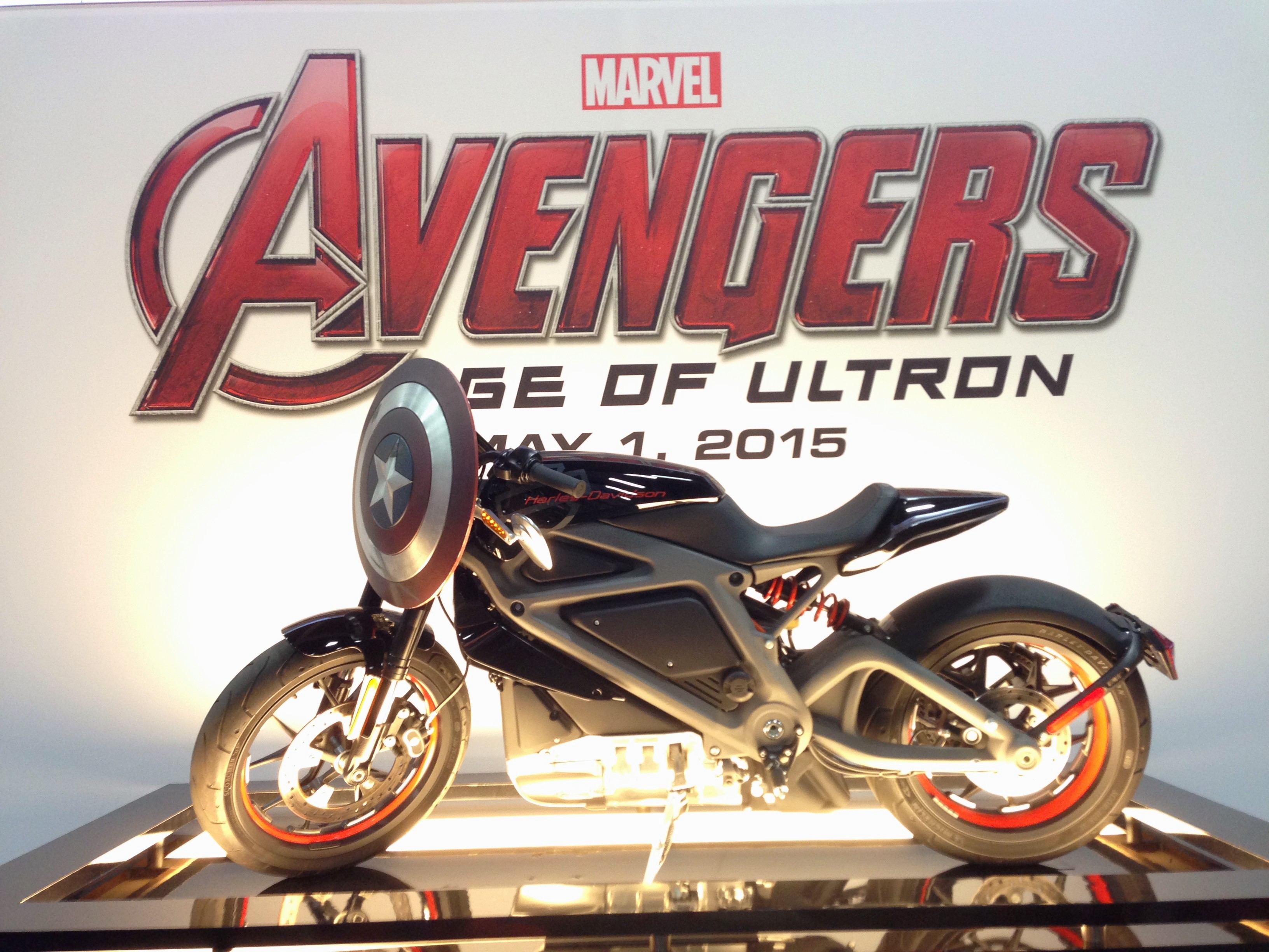 Below the footage description are three new props from Avengers: Age of Ultron which were shown off on the San Diego Comic-Con floor this weekend. One is the Harley-Davidson electric bike which will be used by Black Widow (Scarlett Johannson) in the movie, but the other two are relevant to the description below.
