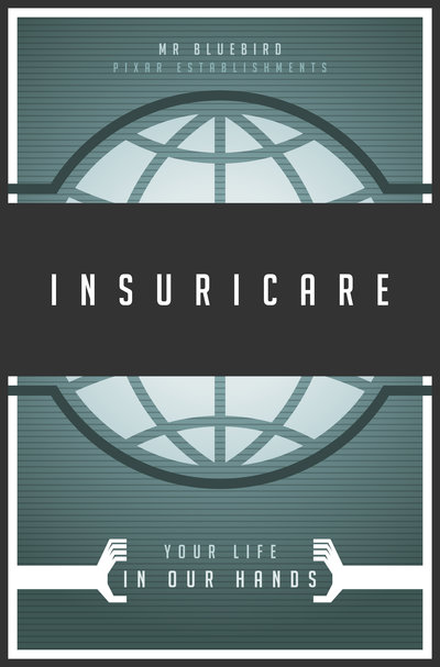 The Pixar establishments posters are his takes on some of the great places to eat, sleep, or work in the likes of Toy Story (1, 2, and 3), Ratatouille, Cars, Monsters, Inc., A Bug’s Life, and The Incredibles. Of all of them, I think the Insuricare poster from The Incredibles is my favourite. Graciotti says himself of the poster,