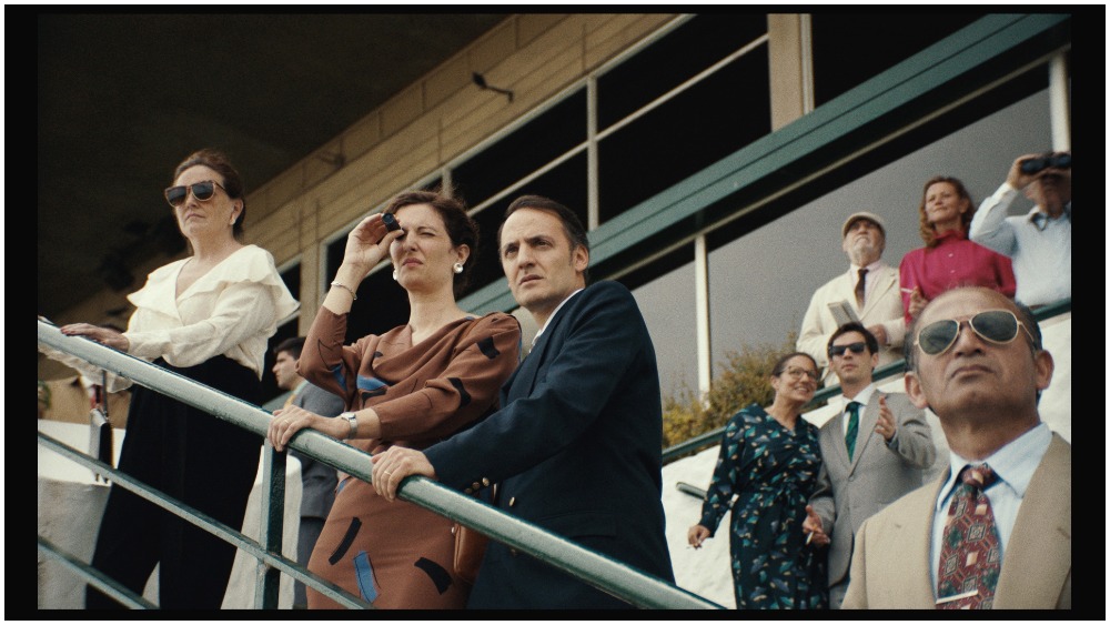All this looming darkness is countered by a palette that recalls 1970s Super-8 holiday movies. Threatening conversations take place at the races or over drinks in private clubs, horror stories are told on rides through verdant countryside, and fears are voiced in glittering pools. Like Yvan, on the surface everything looks cool, calm and unperturbed, but the underlying darkness seeps out in every scene.