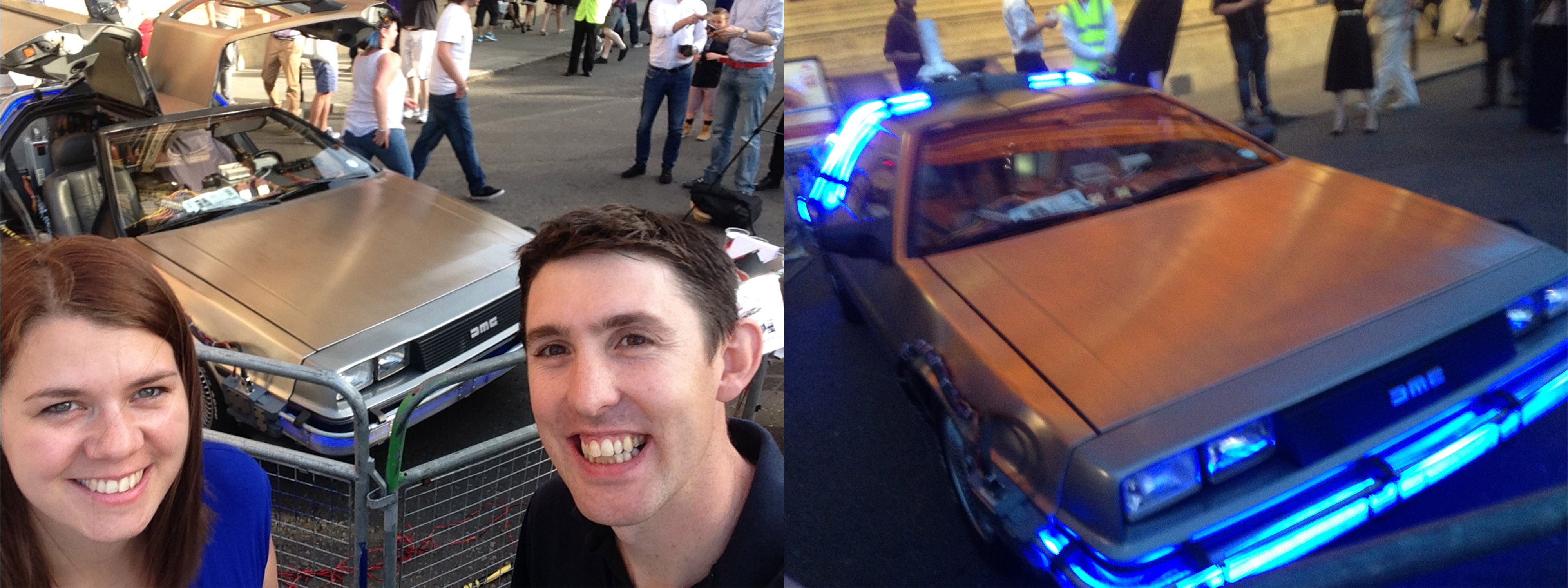 The venue had organised a DeLorean to sit outside the event with people queuing up for selfies with the car (raising money for the Showmasters Up to 88 campaign raising money for the Michael J. Fox Foundation).