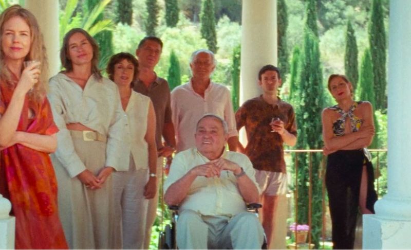 Only, the scene instantly changes to an older party of seemingly mismatched guests of a wealthy and infirm benefactor who arrive at a stunning Balearic villa some distance away from a raging forest fire on the horizon. De Sosa presents each character, their idiosyncrasies and any ulterior motives, as well as broadly painting them as a stereotypical upper class ensemble, too preoccupied in their lot and their squabbles that real life literally burns away in the distance. Indeed, there is an incredible scene where the reality of the wildfire literally gatecrashes their pool party and brings them out of their bubble for a split second, before this is brushed off in a drug-fuelled haze that feels as bogus as their relationships.