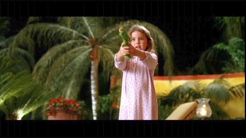Arriving at Bill’s house with guns poised Beatrix Kiddo steps into a gun fight she was not expecting. Bill and B.B. in the middle of a pretend life and death situation welcome the introduction of The Bride with a playful version of a Mexican standoff. The utter desolation on Uma Thurman’s face and the complete collapse the realisation of her situation is nicely over the top, yet completely in keeping with the heightened emotional journey. The scene following with Mother and Daughter lying in bed watching Shogun Assassin is a welcome calm before the final throes of the storm.