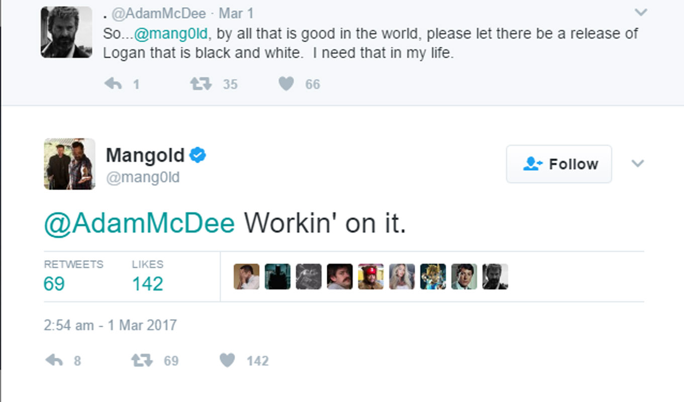 So how can Logan director, James Mangold improve on this? Or the question should be – should he even try? Well, on the day of Logan’s release Mangold took to twitter to reply to one eager fan’s plea to him to deliver a version in black and white. His simply reply ‘Workin’ on it’ could this be an unofficial announcement that we can expect to witness this deeply brutal westernesque last stand in black and white for the DVD/Blu-ray release in a few months time?