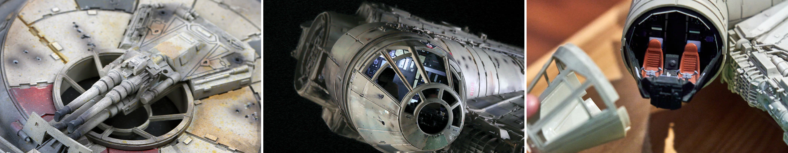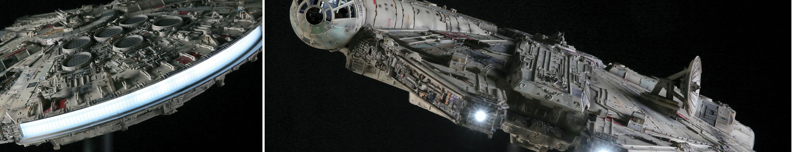 This is what you’re building towards – perfectly made Metal and ABS parts with illuminated thrusters, cockpits and other lights, built as a faithful reproduction of the best known Corellian YT-1300f (with some idiosyncratic modifications thanks to a number of unique owners) in the skies.