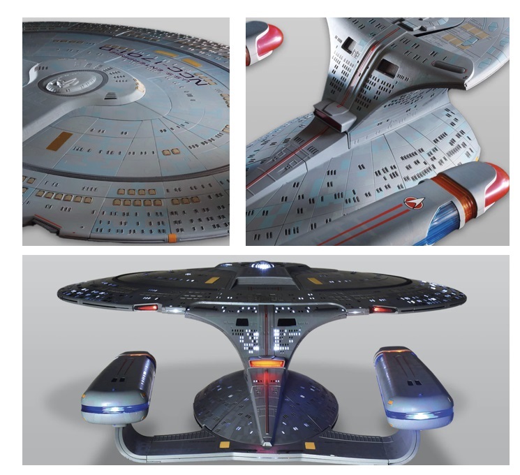 The model itself is accurate in the most minute detail, it features lighting effects and is made of die-cast metal. At 71cms, this replica of the most beloved Galaxy-class has engines that light up, windows that illuminate and – for those who truly enjoy the Best of Both Worlds – the saucer section separates…