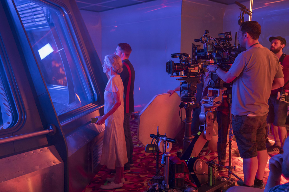 In the episode in which the below images are taken, an episode titled Impossible Planet, which is written and directed by The Night Manager’s David Farr, Jack Reynor and Benedict Wong lead the cast of as two disillusioned, disenchanted and indifferent space tourism employees who take up an elderly woman’s (Geraldine Chaplin, A Monster Calls, Doctor Zhivago) request for a trip back to Earth… the existence of which is a long-debunked myth. She appears easily confused, plus she’s rich. As the journey unfolds, however, their scam begins to eat away at them and they ultimately find themselves dealt a bittersweet surprise.