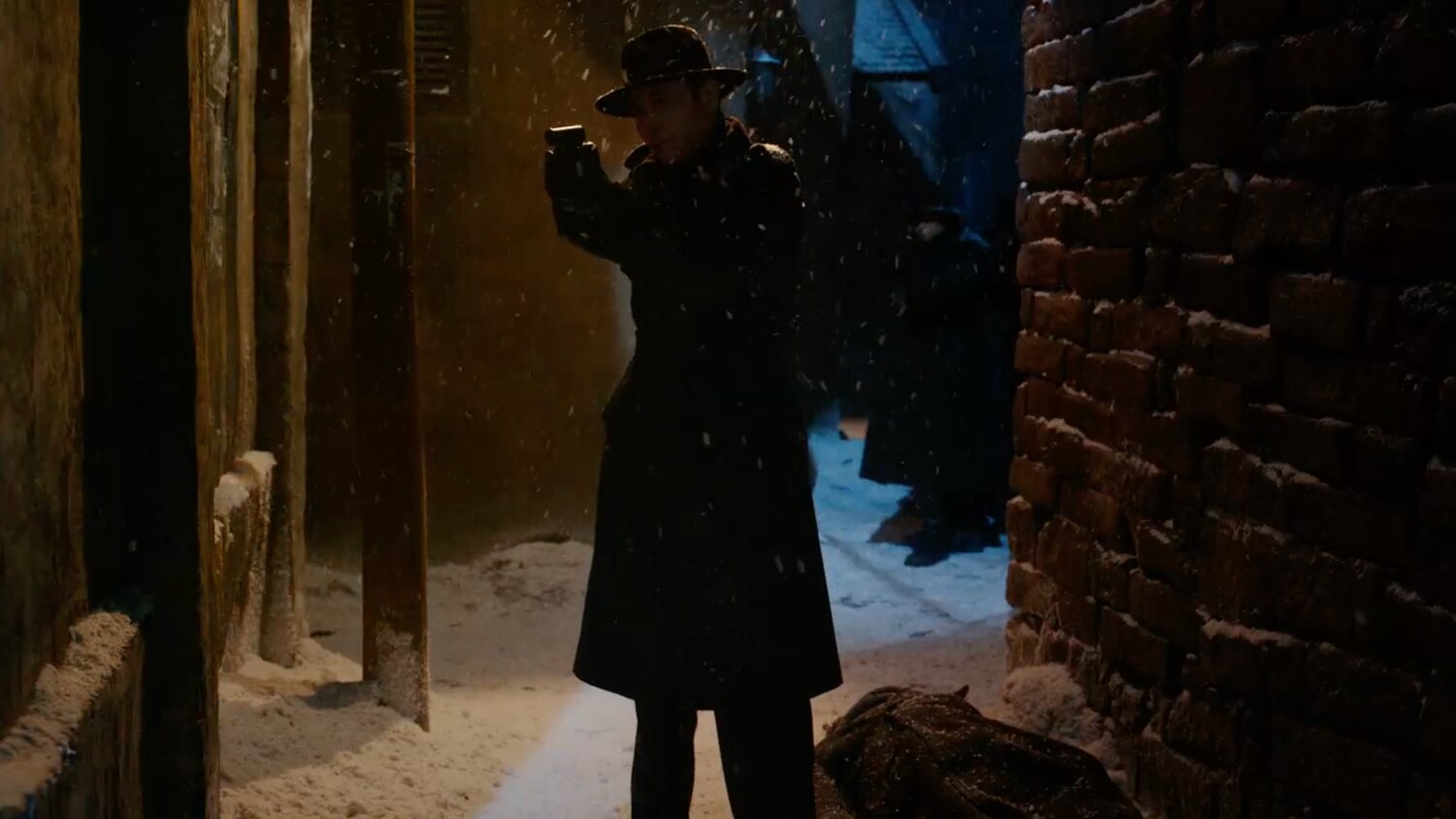 None of Yimou’s aesthetic style is absent either; the film is set largely across two acts, taking place in winter mountains and then the streets of Harbin. The former possessing a monochrome whiteness with the thick, heavy snows that make up the treacherous terrain are characters are sinking into. While Harbin is a decidedly noirish cityscape, all dark streets and labyrinthine alleys. While lacking the elaborate flair of the director’s more ostentatious works, the costuming is as detailed and beautiful as ever. Forming a pristine and distinctive coat over characters whose morality ranges from grey to black.
