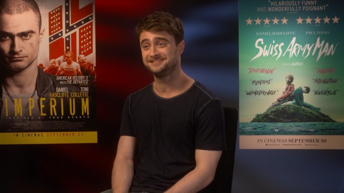 When tied to such a renowned franchise, as Daniel Radcliffe had been with Potter, it can be difficult to distance yourself, and try new things as an actor. Though when Radcliffe let it all hang out on stage, it should’ve become clear then, that here’s a man with ambition, to try new things and progress in his craft. Given he was in London promoting his two latest films, Imperium and Swiss Army Man, where he plays an undercover Nazi and a farting corpse, respectively – it’s fair to say his role are somewhat diverse at present.