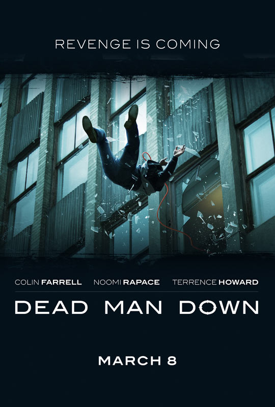 “DEAD MAN DOWN is an action thriller that stars Colin Farrell and Noomi Rapace as two strangers whose mutual desire for revenge draws them together and triggers an escalating trail of mayhem. The film, which also stars Academy Award nominee Terrence Howard and Dominic Cooper, marks the American theatrical debut of director Niels Arden Oplev (the original The Girl With the Dragon Tattoo).”