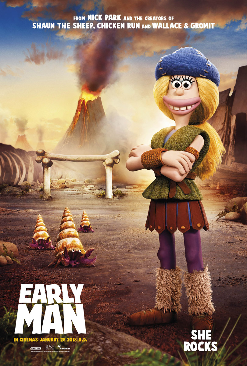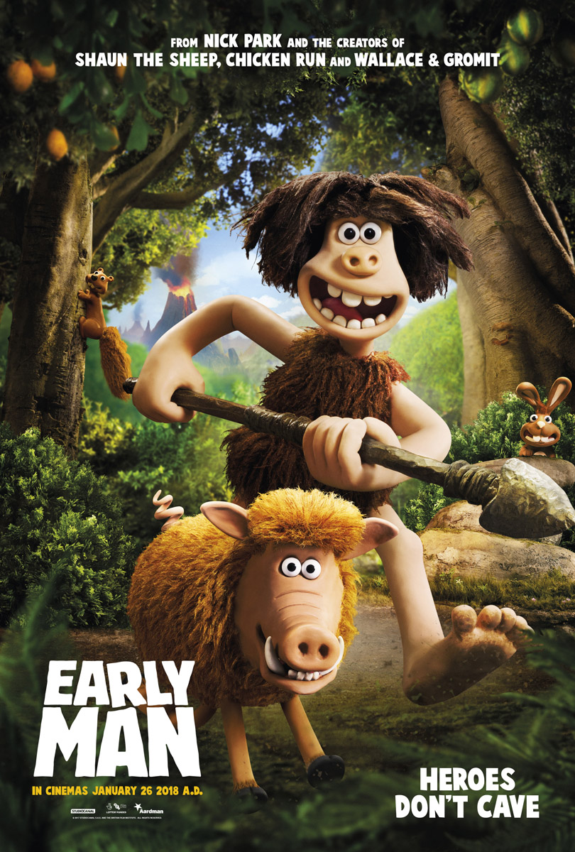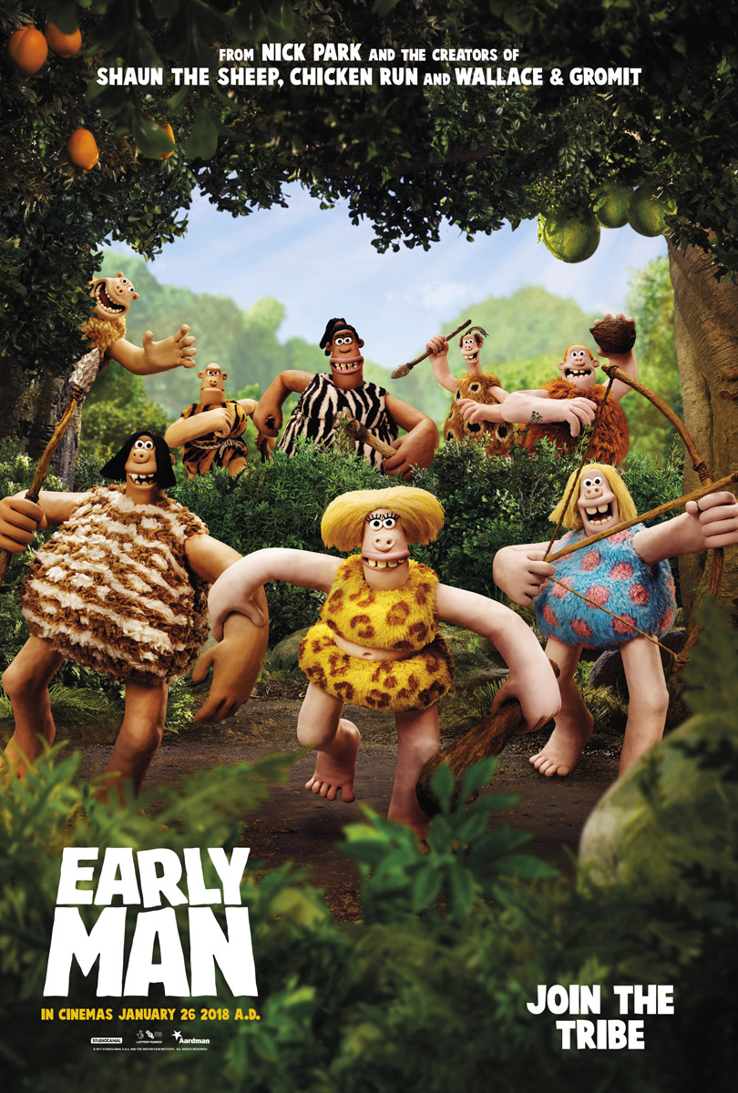 The new prehistoric comedy adventure from four-time Academy Award® -winning director Nick Park and AARDMAN is set at the dawn of time, when prehistoric creatures roamed the earth, EARLY MAN tells the story of courageous caveman hero Dug (Eddie Redmayne) and his best friend Hognob as they unite his tribe against a mighty enemy Lord Nooth (Tom Hiddleston) and his Bronze Age City to save their home.