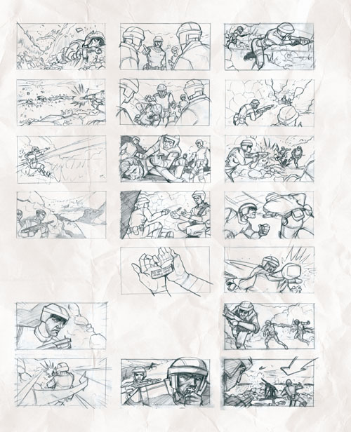 Click the images below to enlarge which show concept art, a set photo, a character portrait and a storyboard.