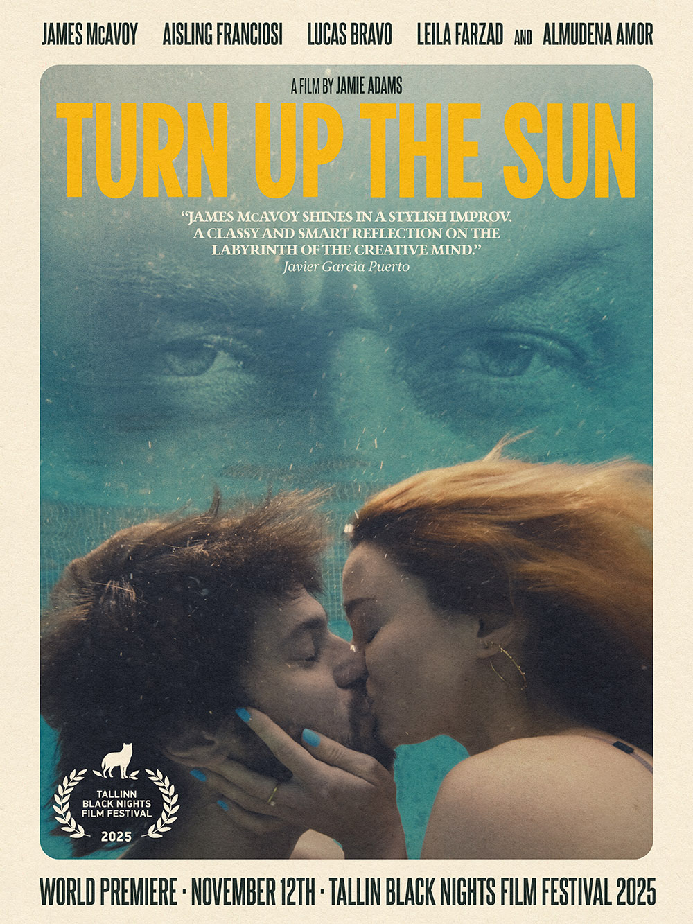 Described as an “existential happening presented as a heated thriller,” ‘Turn Up the Sun’ stars James McAvoy, Aisling Franciosi, Lucas Bravo, Leila Farzad, and Almudena Amor (The Good Boss). The project was shot over six days, entirely improvised from a story outline and made on a very low budget — in keeping with Adams’ guerrilla filmmaking ethos.