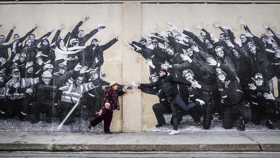 While politicians and pundits puzzle over the decline and dispossession of small towns as a result of deindustrialisation, a pair of eccentric experimental artists — one an eighty-nine year-old filmmaker with a two-tone bowl cut; the other an anonymous street artist who hides behind his sunglasses — depart for the French countryside in a truck resembling and rigged to function as an oversized camera, complete with its own photo booth and printer. Their aim: to photograph the residents of the rural villages they pass and paste their portraits onto the facades of the buildings that they inhabit. Or something.