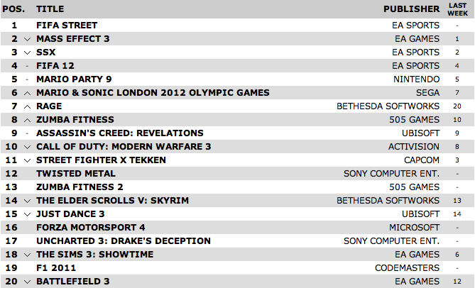 This time it’s a little more surprising as it had some stiff competition from EA’s other AAA title Mass Effect 3. With all the grief Bioware are getting regarding the third games ending, I thought the extra hype may have pushed ME 3 to the top spot.
