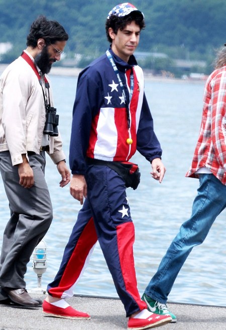 We’re pretty sure this is going to be a return to form for the comedian, after 2009’s try-too-hard Bruno. Check out the man in his Dictatory uniform, below; as well as a snap of Cohen on set draped in a rather fetching Stars’n’Stripes shell suit. It’s niiiice.