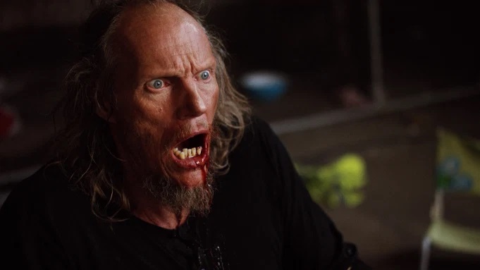 The script doesn’t let up as we’re swiftly introduced to Barry (brilliantly played by Gary Green), a perpetually frazzled, financially struggling, drug addled dad/scumbag, who looks like a hybrid of Lee Van Cleef, Julian Beck (Kane from Poltergeist 2) and Dieter Laser from The Human Centipede films.