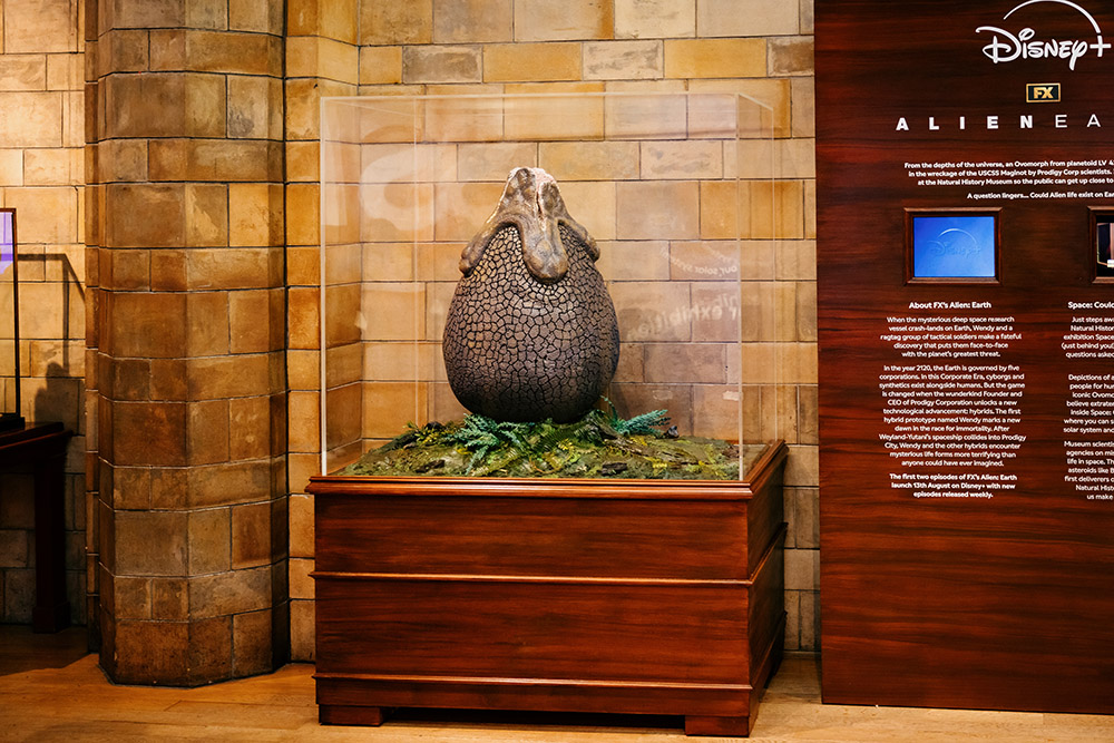 From August 9th, the streaming platform will host a two-week exclusive installation at London’s Natural History Museum, giving visitors a rare chance to see an iconic specimen from the world of ‘Alien’ up close. Visitors to London’s Natural History Museum can get up close to the Xenomorph egg from FX’s highly anticipated upcoming series, ‘Alien: Earth.’ The display is situated opposite the entrance to the Museum’s blockbuster exhibition, Space: Could Life Exist Beyond Earth? where visitors can touch real pieces of the solar system. Visitors and fans alike can bear witness to the first stage in the life cycle of the Xenomorph in this special display.