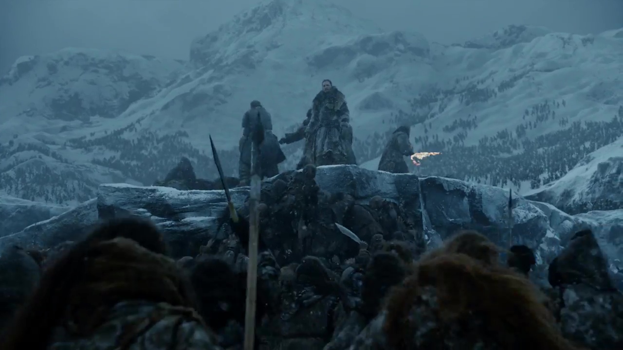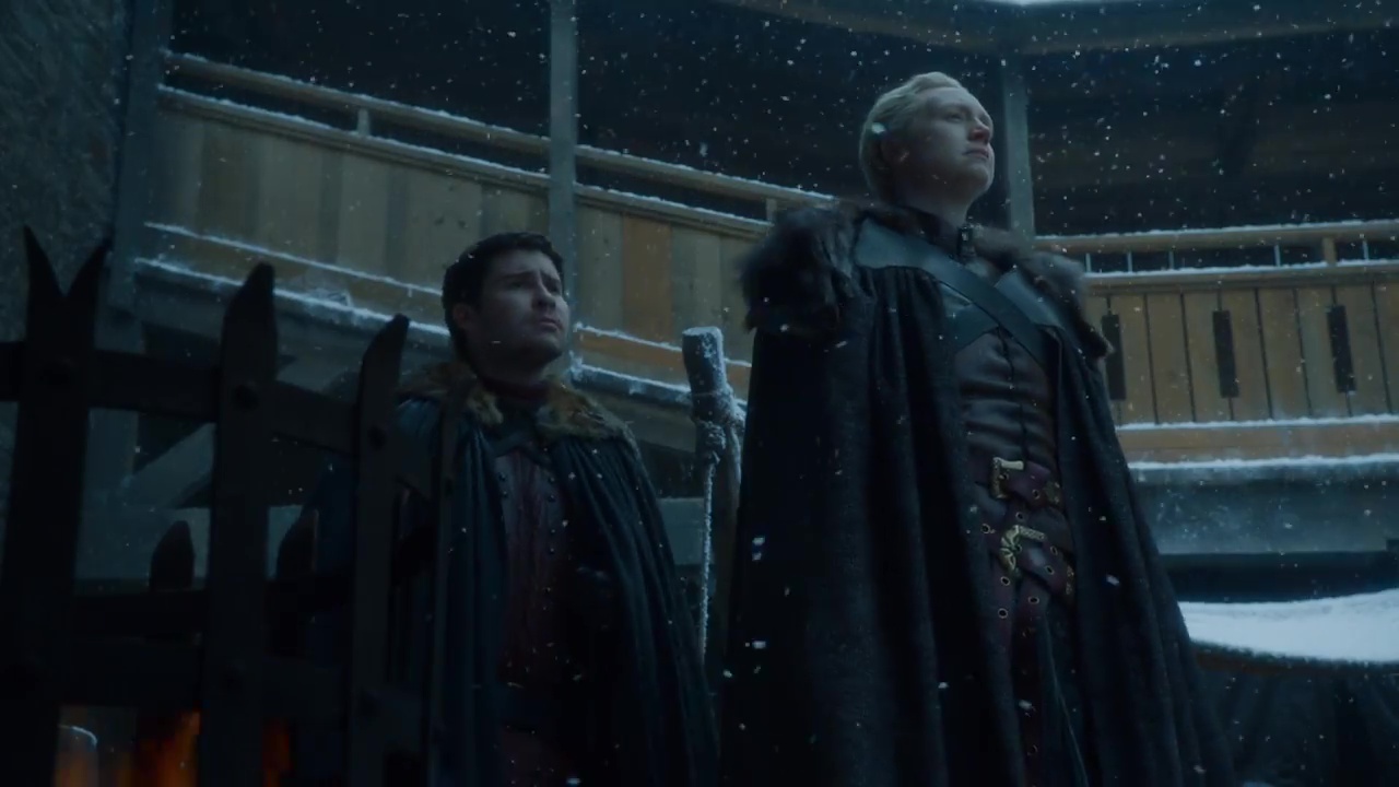 Some of this we knew already. Sansa is at Winterfell, here she begins the trailer walking beneath the Weirwood trees so important to Bran’s ever-increasing power. Bran himself has graduated to a wheelchair and looks to be at The Wall. As you can see below we have this illuminating shot of Beric Dondarrion and his flaming sword which is about as hype as you can get without both Clegane brothers in the same scene.