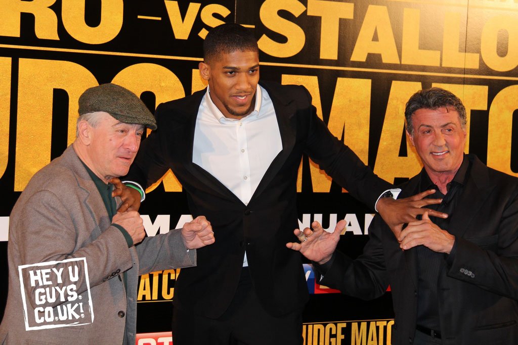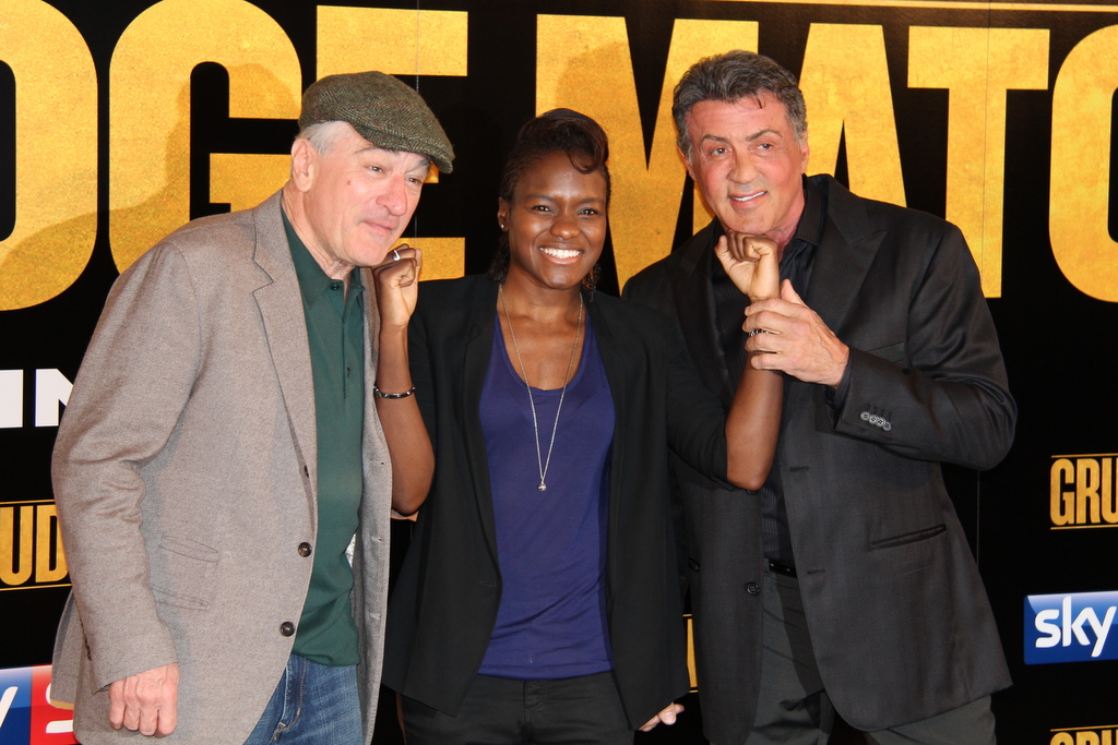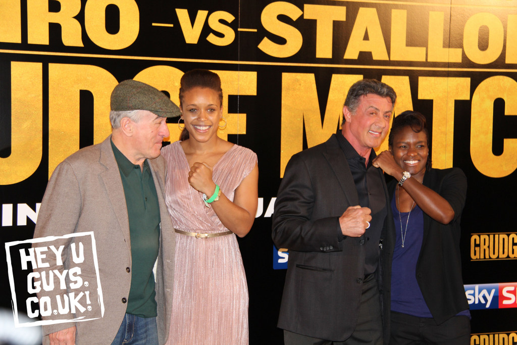 It’s not too often that you get to spend your afternoon with one of your acting heroes let alone two! Today however was a different day as we were lucky enough to attend the UK Press Conference for Sylvester Stallone and Robert De Niro’s new movie, Grudge Match. The acting legends were joined by multiple British Boxing champions including Nicolas Adams who won gold at the 2012 Olympics and can be see with (and owning!) the 2 cast members in the photo above!