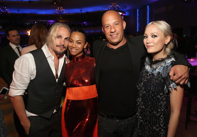 The cast for the new film includes Chris Pratt, Zoe Saldana, Dave Bautista, Michael Rooker, Karen Gillian, Elizabeth Debicki, Pom Klementieff, Sylvester Stallone, Kurt Russell, Vin Diesel and Bradley Cooper. Most of whom turned up last night for the red carpet.