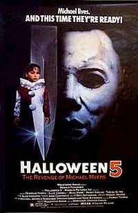 Halloween Part 5: The Revenge of Michael Myers in 1989. Set one year after the ending of part 4 and starting with a recap showing Michael falling down the mine shaft and the police actually throwing some dynamite into the mine to really finish him off. But good old Michael climbs free just in time and crawls to a shack owned by a hermit where he lies in a comatose state for a full year until Halloween, what a body clock!