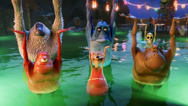 I don’t think so, I think those scenes are equally funny in 2D. I think where 3D works really cool is in sequences like the flying tables sequence where you really feel the depth of the tables swirling around. Basically the things that looked good in 3D were floating things, where the thing was coming out of the screen or you could feel the depth going in to it, so some of the lobby stuff looked really good in the 3D. But if the timing and the posing and the joke works in 2D it should work just as well in 3D. I don’t think that 3D enhanced it.