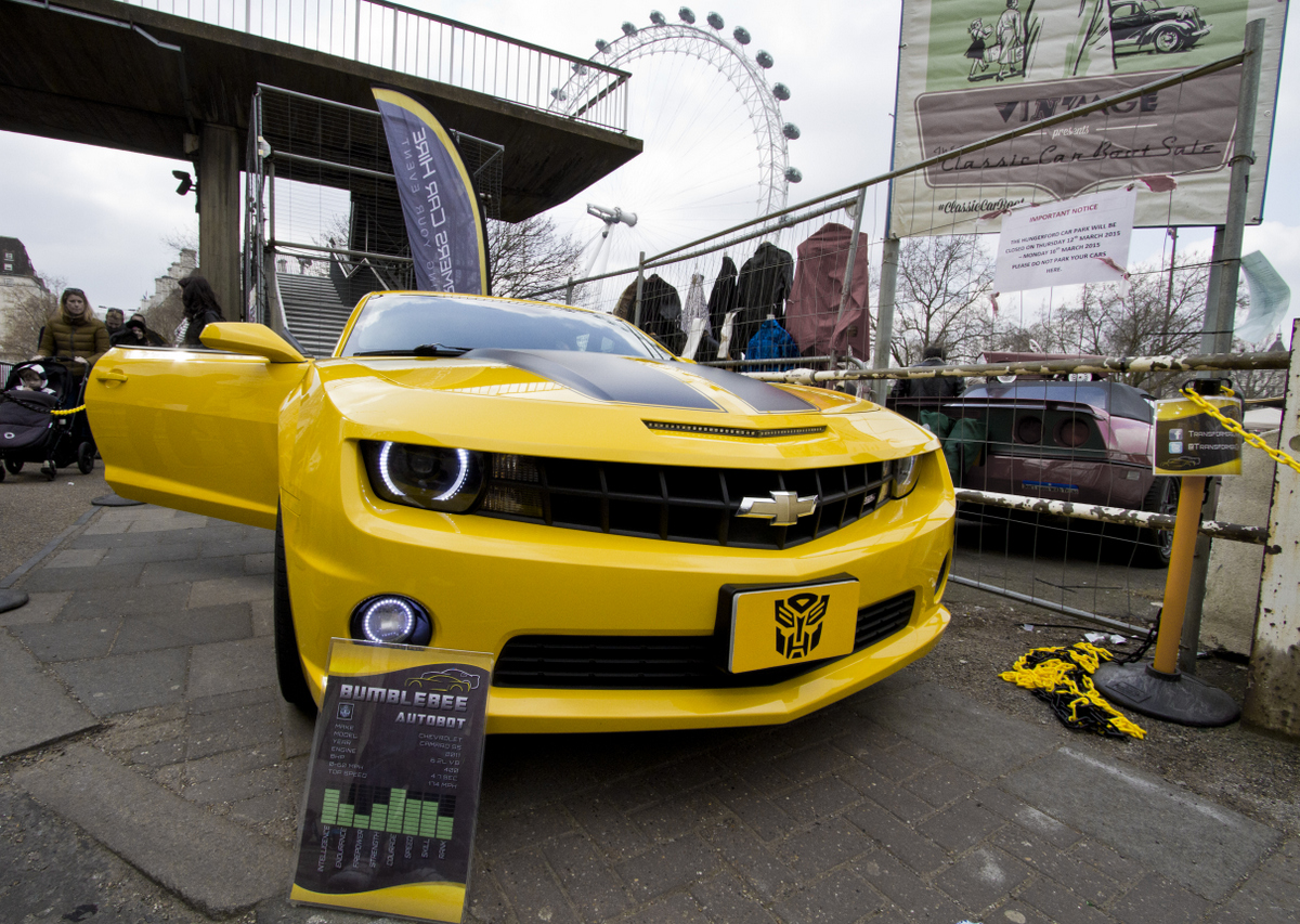 The very special attraction was the DeLorean from Back To The Future with an added side dish of the car version of Bumblebee from Transformers thrown in! There can be few cars more iconic in movie history than the DeLorean and we were privileged to have access to the beautifully maintained car for a little while to live out our Marty McFly dreams under the watchful gaze of the London Eye and the clock tower of Westminster. It’s 30 years since the first film came out to a rapturous reception and the more recent success, and well publicised angst, surrounding the Secret Cinema’s presentation of the film last year is a testament to its enduring popularity.