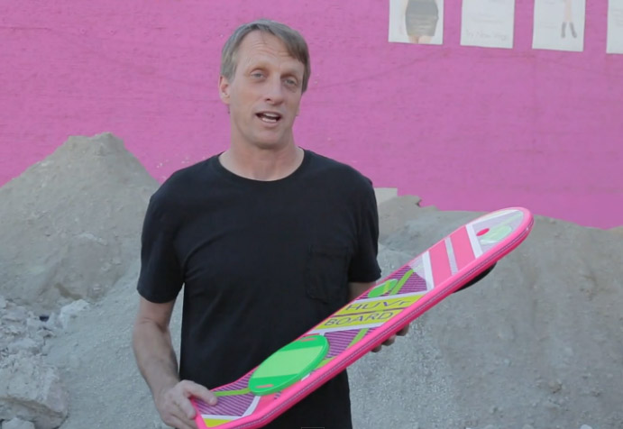 he Hoverboard from Back to the Future Part II has to be one of the most sort-after pieces of non-existent technology ever desired by the movie-watching public (see our post on that very thing right here) but as of today, it has become a reality*! Christopher Lloyd has been out with company HUVrTech to promote the new technology with various celebrities including legendary skateboarder Tony Hawk in an LA carpark. Originally the device was made by Mattel but evidently the cost of research was too much for the toy company but HUVrTech have taken on the challenge to bring us this!