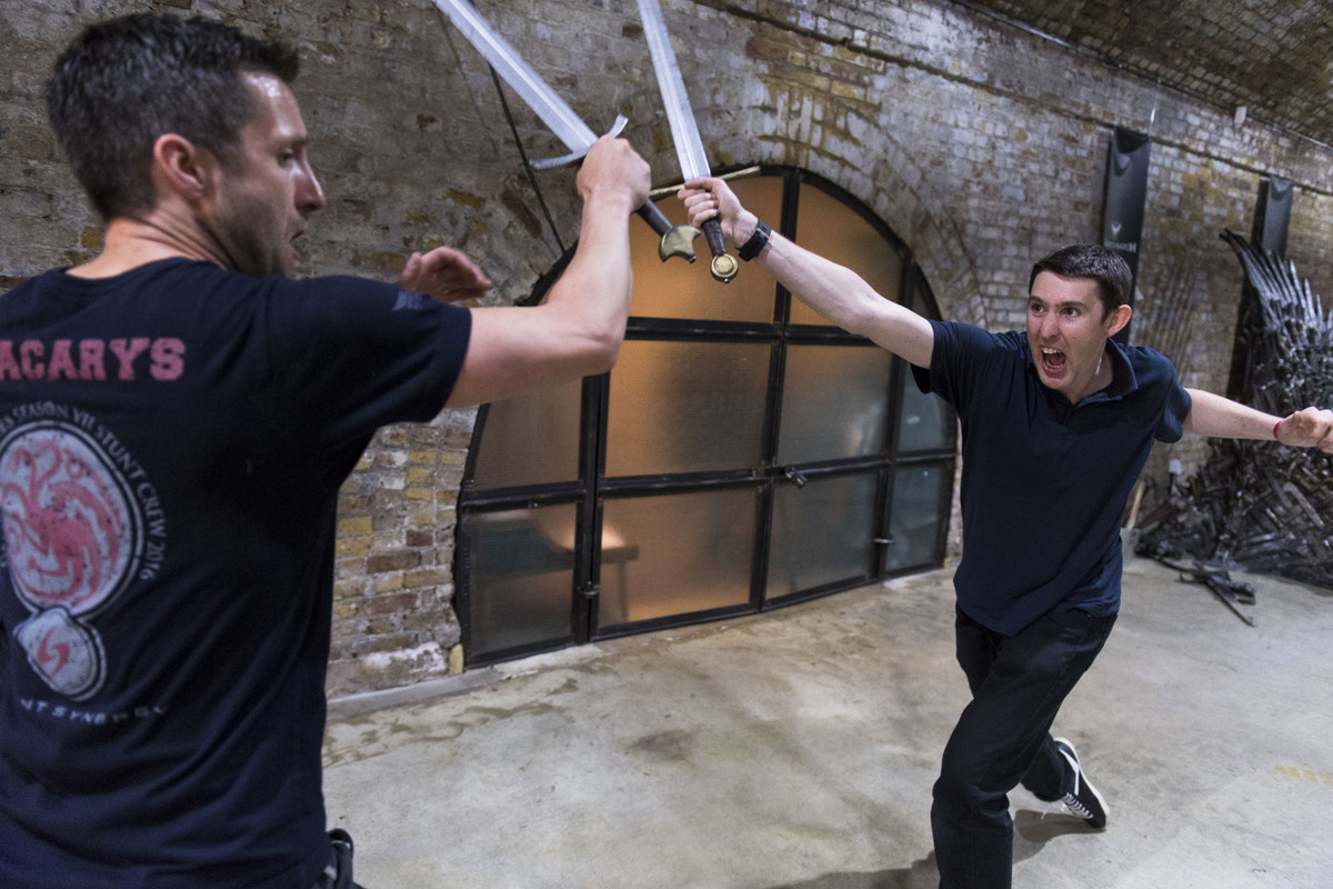 Hosting the event were Game of Thrones Weapons Master Tommy Dunne (who has also worked on movies including Gladiator, Saving Private Ryan, Blood Diamond, & The Bourne Ultimatum to name but a few) and Stunt Coordinator Rowley Irlam (whose CV is just as impressive and includes Casino Royale, Captain America, Thor, Guardians of the Galaxy, Skyfall, Captain Phillips and many more) who would be putting us through our paces using both the sword and the bow. I’d done a little bit of archery before so wasn’t too nervous but it was the use of the sword that sent shivers down my spine. When I was around 12 years old i went to learn fencing – I was so bad at it that the teachers thought it was taking the p*ss out of them so got asked to leave! Scared from the experience i was hoping to do somewhat better again Rowley and his stunt team.