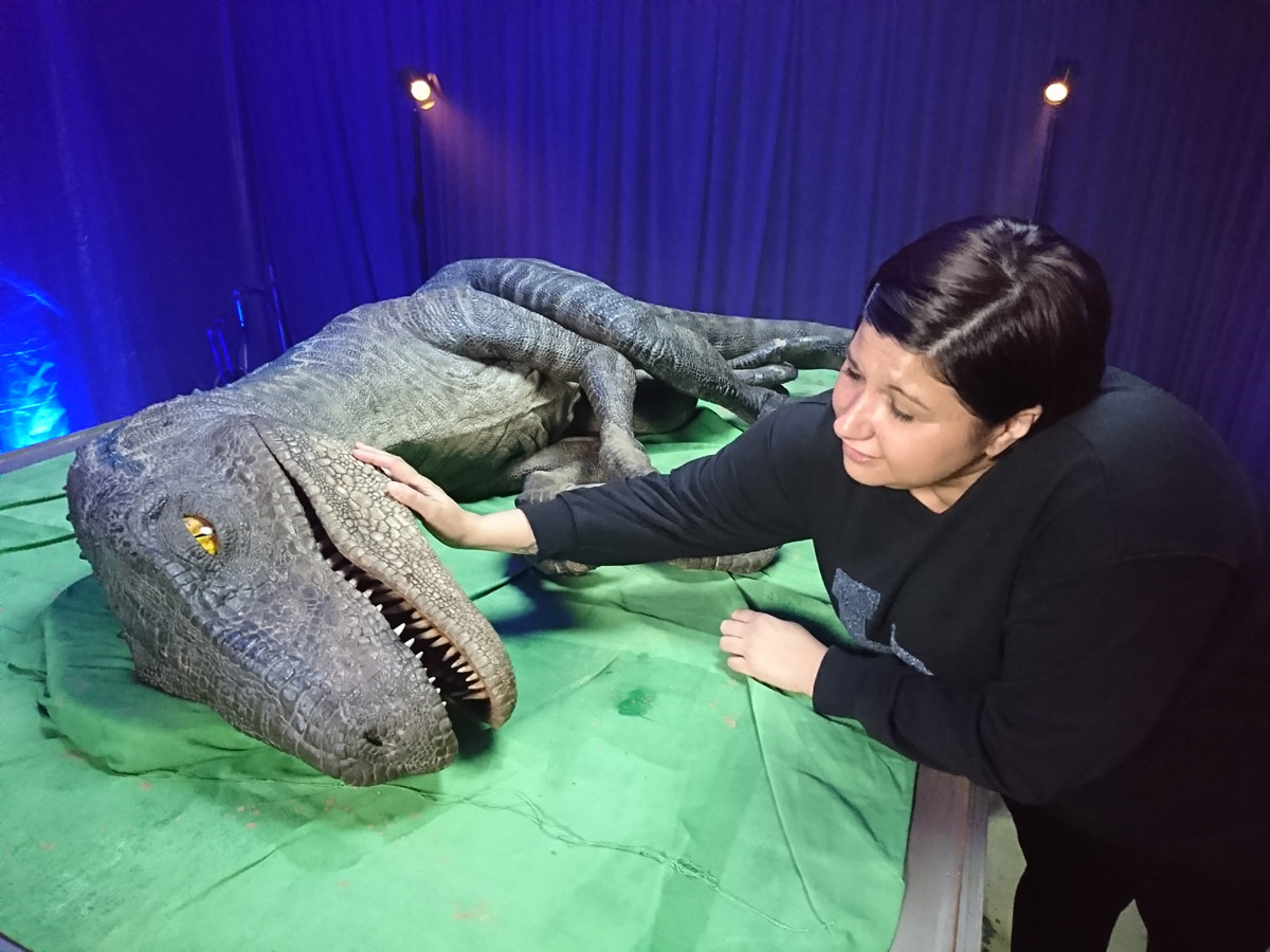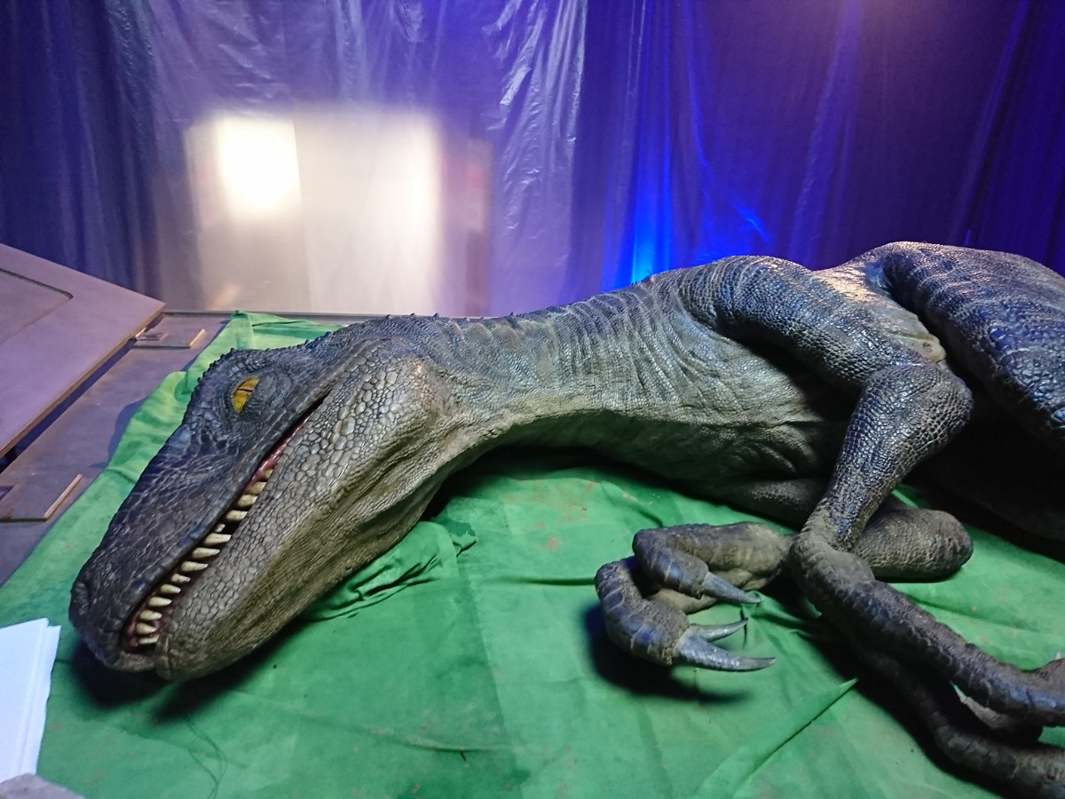 Come the end of the day, Neal Scanlon very kindly introduced us to an injured yet somewhat lively Blue. Whilst laid out on a platform, we were lucky enough to get up close and personal with the extremely lifelike dinosaur for a few picture opportunities. Thanks to the team of men placed under the platform manning the movements of the sick dino, there were a few moments where we could have lost a finger or two ourselves.