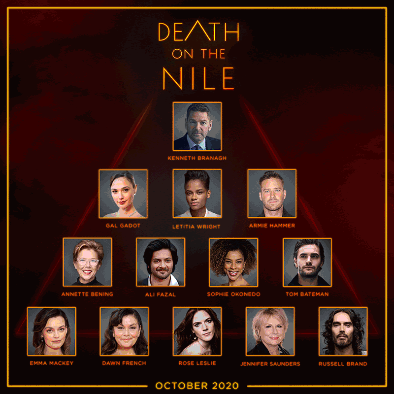 Reuniting most of the core crew from the first film, this murderous adventure sees five-time Academy Award® nominee Kenneth Branagh returning as director and once again stars as famed Belgian detective Hercule Poirot. He is joined by an all-star cast of suspects which includes: Tom Bateman (who reprises the role of Bouc from ‘Murder on the Orient Express’), four-time Oscar® nominee Annette Bening (‘Captain Marvel’), Russell Brand (‘Ballers’), Ali Fazal (‘Victoria & Abdul’), Dawn French (‘French and Saunders’), Gal Gadot (‘Wonder Woman’), Armie Hammer (‘Call Me by Your Name’), Rose Leslie (‘Game of Thrones’), Emma Mackey (‘Sex Education’), Sophie Okonedo (‘The Secret Life of Bees’), Jennifer Saunders (‘Absolutely Fabulous’) and Letitia Wright (‘Black Panther’).