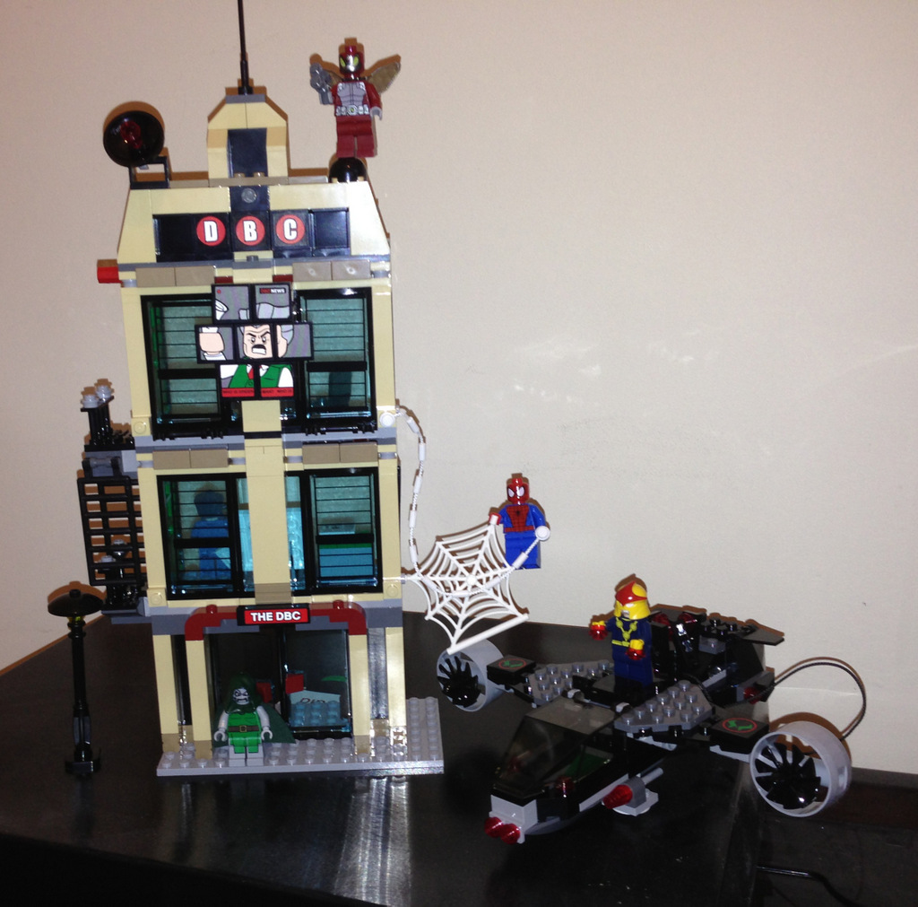 The new set that I was sent is based for kids ages 6-12 years old, (I ignored the giant numbers on the front as I’m a little older than that) and was quiet a basic set to put together but the final product looks like it will have taken you hours to assemble (I think it took me about 90 minutes). Included in the pack are Spider-Man, Dr. Doom, J. Jonah Jameson, Beetle and Nova all of who come equipped with their own weapons (or in Dr. Doom’s case, a cape and his aircraft).