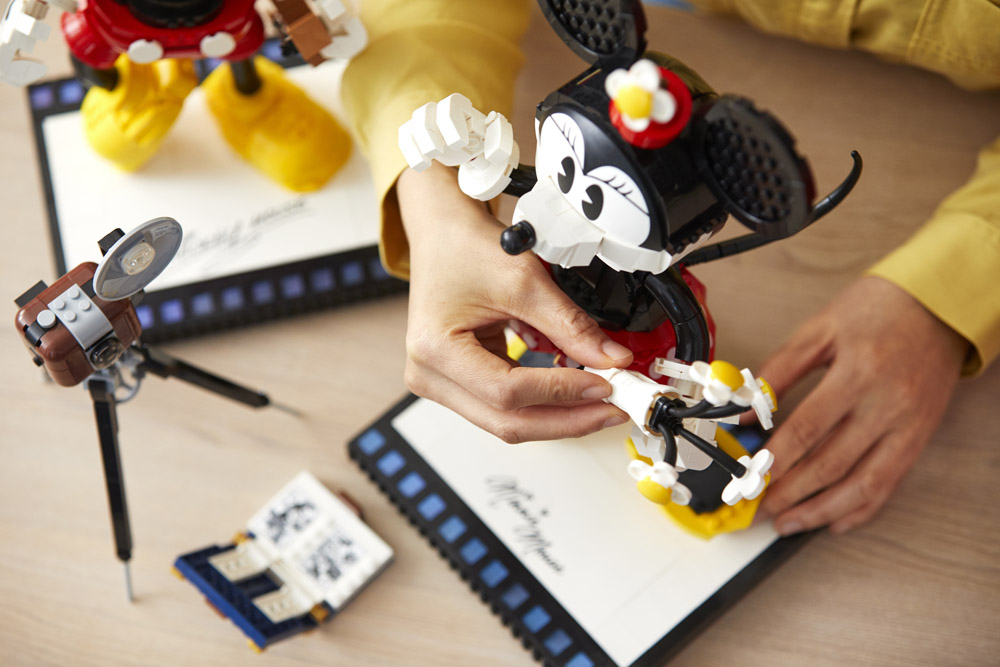Helping to bring some nostalgic movie magic into any home or office, each figure in the new set also stands on a base that resembles an old-time film reel, complete with the original character signatures. With Mickey Mouse standing tall at 14 in. (36cm) high and Minnie Mouse at 13 in. (35cm)[2], the pair make a perfect addition to any Disney fan’s LEGO®|Disney collection or as a stand-alone display.