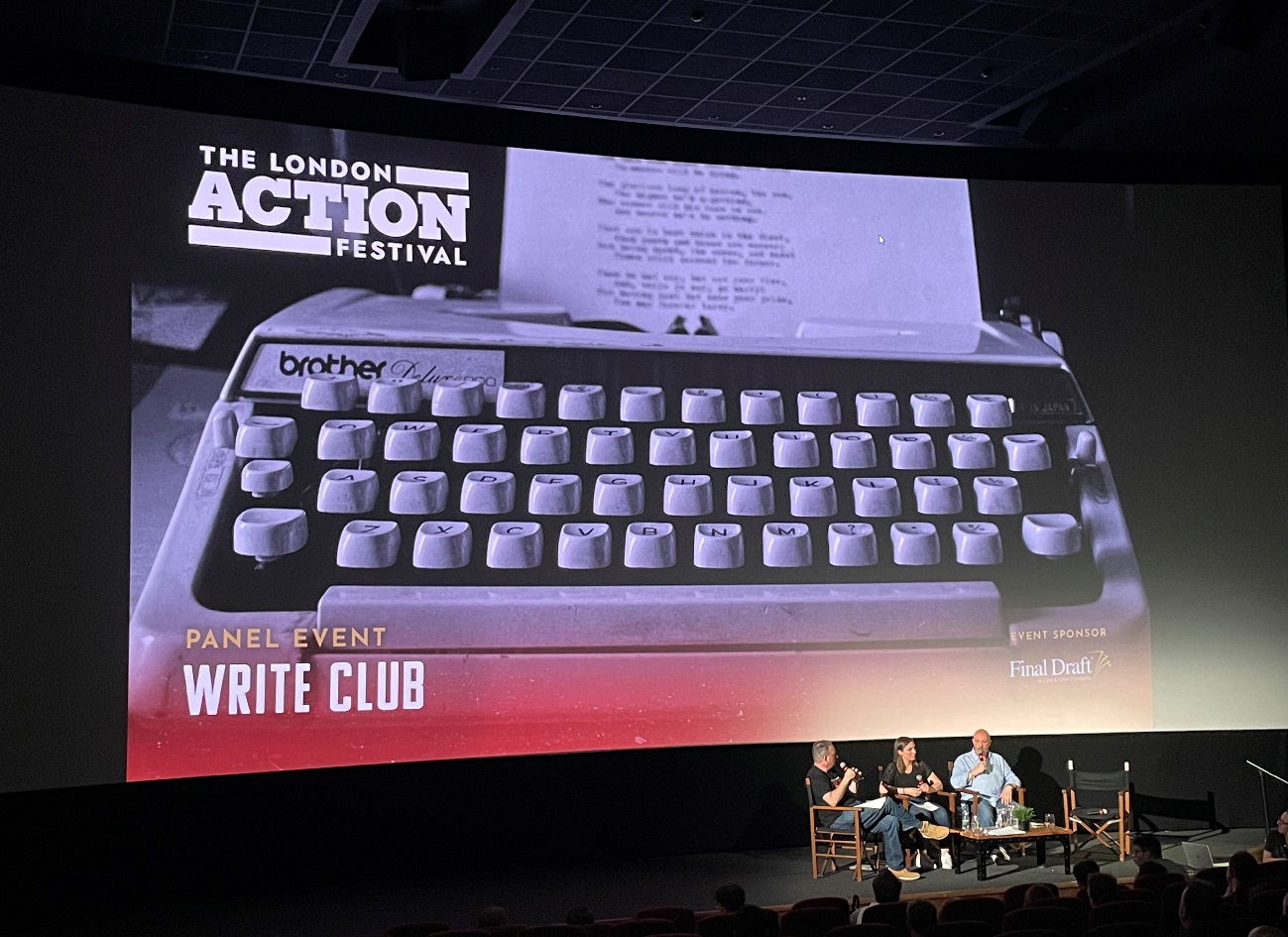 The writers then talked about different script writing methods. Pages from the screenplays of The Matrix, John Wick and The Bourne Identity were presented on screen so the audience could look at the different ways to write an action scene.