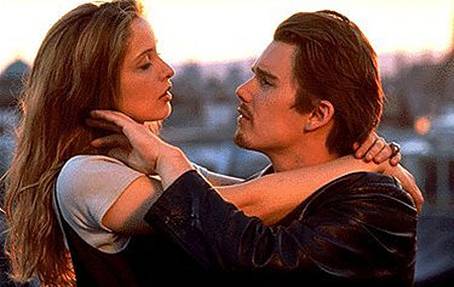 A chance encounter on a train leads Jesse (Ethan Hawke) to make an impromptu proposal to Celine, a French graduate student on her way to Paris (played by the luminously beautiful Julie Delpy) when he asks her to get off the train with him in Vienna and spend the night with him before he’s due to catch his plane back home the next morning. Much to his delight she agrees and what follows is a truly beguiling adventure as the two of them explore the majesty of Vienna, talk about their lives and loves and grow forever closer knowing that come sunrise they may very well never see each other again.