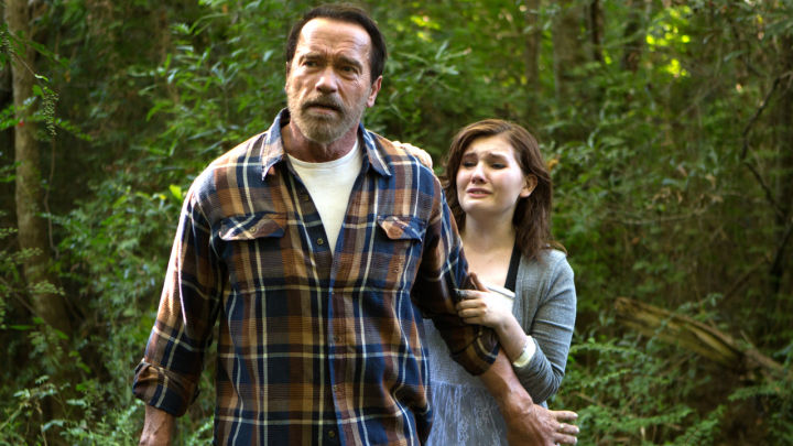Having contracted the incurable Necroambulist virus while away from home, Maggie Vogel (Abigail Breslin) is quickly quarantined as the infection begins to spread from a bite mark on her arm. With symptoms yet to present, she is temporarily released into the care of her father, Wade (Arnold Schwarzenegger), and allowed to return to the home that he shares with Maggie’s step-mother (Joely Richardson) and half-siblings (Aiden and Carsen Flowers).