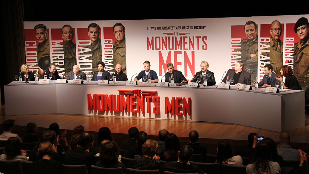 This afternoon, we spent in the presence of acting greatness as we were joined by some of the biggest acting stars in the world at the Press Conference for The Monuments Men. Producer, Director and actor George Clooney, Matt Damon, Bill Murray, John Goodman, Jean Dujardin, Bob Balaban, Dimitri Leonidas, Producer Grant Heslov and surviving member of the original Monuments Man Harry Ettlinger were all in attendance at the Press Conference for their movie in London’s National Gallery.