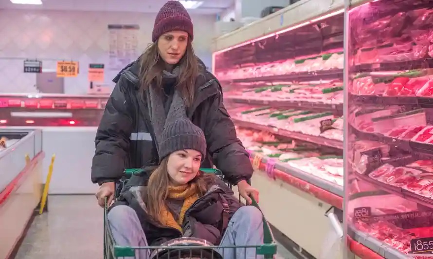 There is something surreal about grief. It can make us feel things and remember things in ways that are more vivid and impactful than usual. Patricia Rozema’s direction represents this very well, but mostly unobtrusively (the exception being a couple of musical sequences that feel a little out of place). Early on, when Cassandra’s brother (Jake Epstein) comes to talk to her, he tells her how he found their mother. Tall Cassandra breezes past him, asking why he would tell her that, then Short Cassandra also emerges from the same room and just hugs him. This is just one of many moments that use two figures to draw a complex and very credible portrait of a single character. Perhaps the scene that most clearly illustrates how Cassandra’s mind is working from moment to moment, comes when she breaks off from funeral preparations to try and hook up with someone. Tall Cassandra takes the lead, with Short Cassandra mostly sitting off to the side in a chair, representing intrusive thoughts about her writing (“I think every word I’ve ever written, while I was writing it, I was wondering what a man would think when he read it”) and her body (“what are those dangly things, Udders? Turn over”). It’s a sequence that feels completely honest and of the moment as it gets inside Cassandra’s mind, straining for distraction it can’t find.