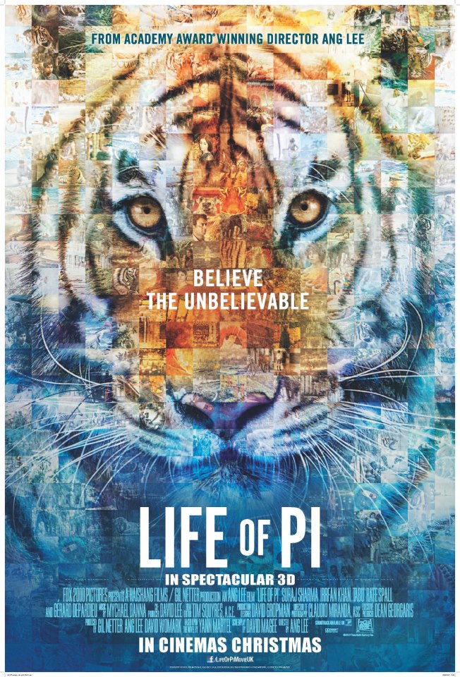 “Director Ang Lee (Brokeback Mountain, Crouching Tiger, Hidden Dragon) creates a groundbreaking movie event about a young man who survives a tragic disaster at sea and is hurtled into an epic journey of adventure and discovery. While marooned on a lifeboat, he forms an amazing and unexpected connection with the ship’s only other survivor — a fearsome Bengal tiger.”