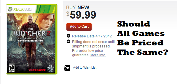 Video games are priced according to the publisher’s MSRP (Manufacturers Suggested Retail Price) and any gamer who has been gaming for any length of time knows that not all games are created equal, but for some reason happen to be priced the same. I get that video games are a business and that businesses like to make money, but I don’t get how some companies go about pricing their products. The uniform pricing model gives companies legs to stand on when pricing their games, but really who is really benefiting from this? Sure, the publishers will derive more revenue initially, but is leaving what could be an inordinate amount of consumers jaded really worth it?