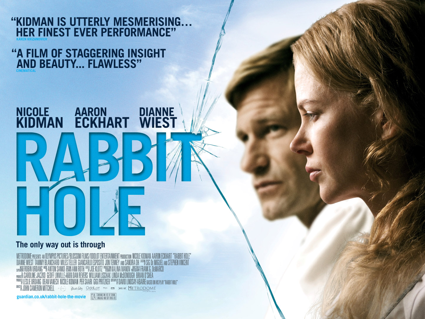 Rabbit Hole is a vivid, hopeful, honest and unexpectedly witty portrait of a family searching for what remains possible in the most impossible of all situations. Becca and Howie Corbett (Kidman and Eckhart) are returning to their everyday existence in the wake of a shocking, sudden loss. Just eight months ago, they were a happy suburban family with everything they wanted. Now, they are caught in a maze of memory, longing, guilt, recrimination, sarcasm and tightly controlled rage from which they cannot escape. While Becca finds pain in the familiar, Howie finds comfort. The shifts come in abrupt, unforeseen moments. Becca hesitantly opens up to her opinionated, loving mother (Wiest) and secretly reaches out to the teenager involved in the accident that changed everything (Teller); while Howie lashes out and imagines solace with another woman (Oh). Yet, as off track as they are, the couple keeps trying to find their way back to a life that still holds the potential for beauty, laughter and happiness. The resulting journey is an intimate glimpse into two people learning to re-engage with each other and a world that has been tilted off its axis.