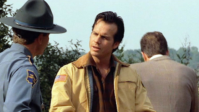 Meanwhile, a world away from this degeneracy, Sheriff Dale Dixon (Bill Paxton) tends to his family in Star City, Arkansas. Dale is an amiable good ol’ boy, happy with his lot yet inspired by bigger things. He is elated by a conference call from LA detectives Cole (Jim Metzler) and McFeely (Earl Billings), who relay that the criminal trio is most likely headed for Star City. “I guess they keep you pretty busy don’t they, chief?” Dale buzzes as he speaks with the LA Chief of Police, who’s also on the call. Dale rambles, “Sometimes we get a stabbing, coloured boys generally… sticking each other over a card game or some shit.” McFeely, a black man, smirks in bemusement, intrigued by Dale’s provincial ways. The conference table joins him, shifting their eyes and subtly cringing.