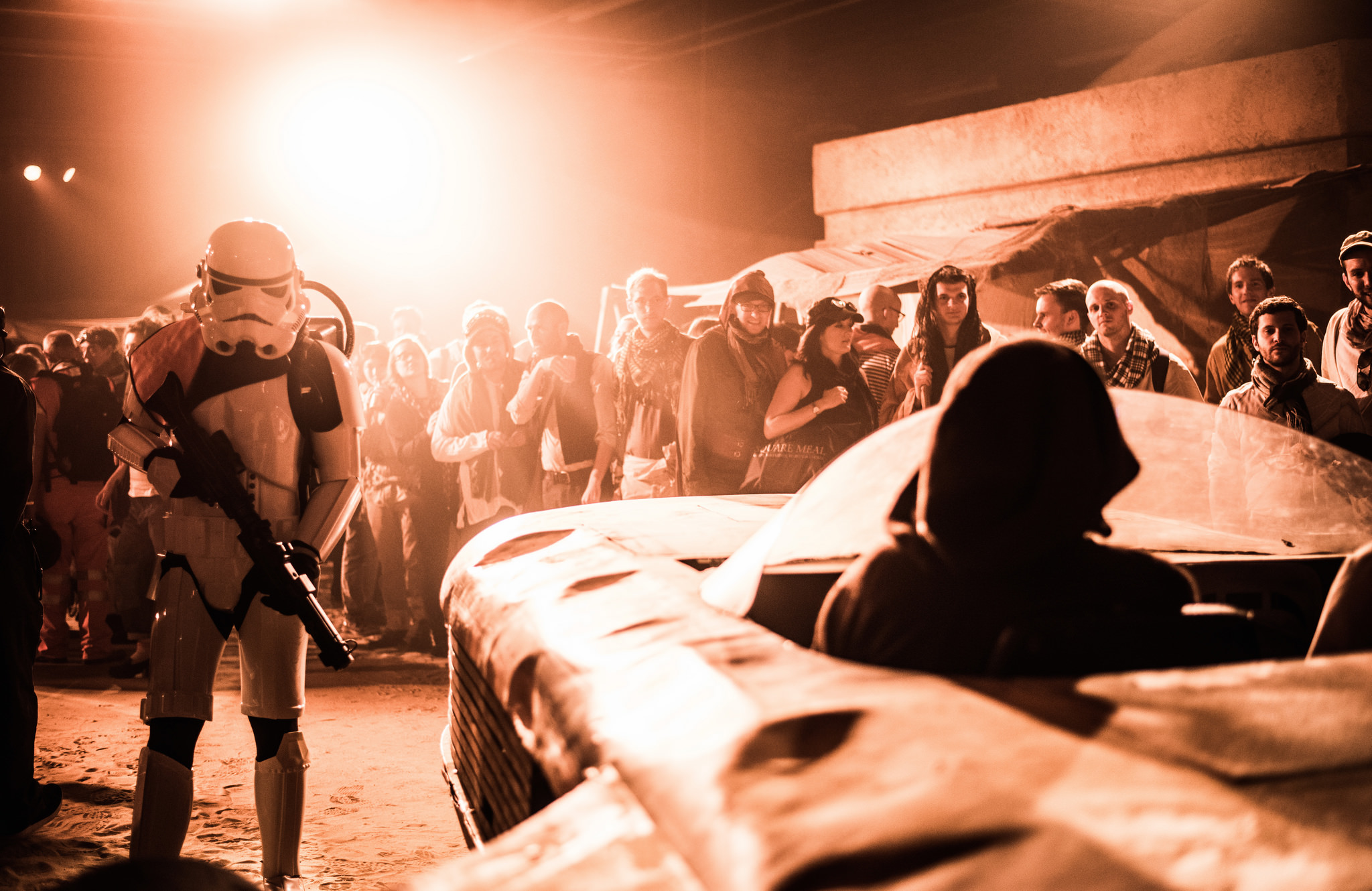 Again, the world-building here is close in scope and ambition to that of the recreation of 50’s small town Americana for their interpretation of Back to the Future which wowed a substantial audience last year, despite the initial setbacks. Secret Cinema has taken things to a galaxy far, far away with mostly striking results, although that’s not to say the evenings doesn’t come up against a couple of stray asteroids before hitting hyper speed.